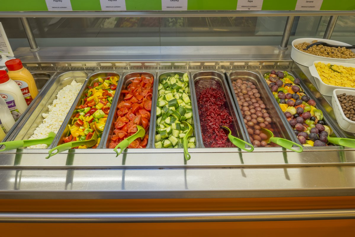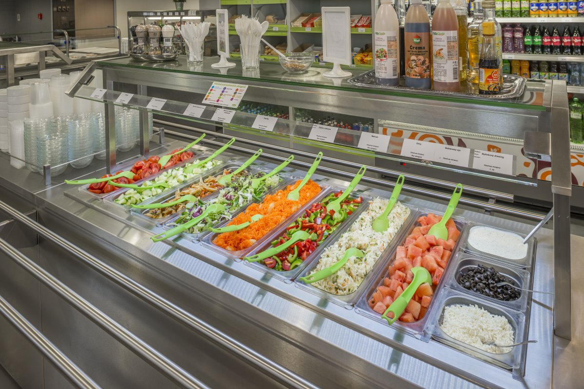 Sortiment nabídky obvykle zahrnuje koncepty obslužné i samoobslužné, jako jsou: standardní jídla, salátový bar s celodenní nabídkou měnící se dle konzumačních zvyklostí, samoobslužný teplý pult, nadstandardní jídla, nápoje, dezerty a obložené bagety vlastní výroby, rozpékané pečivo a doplňkový prodej zboží.